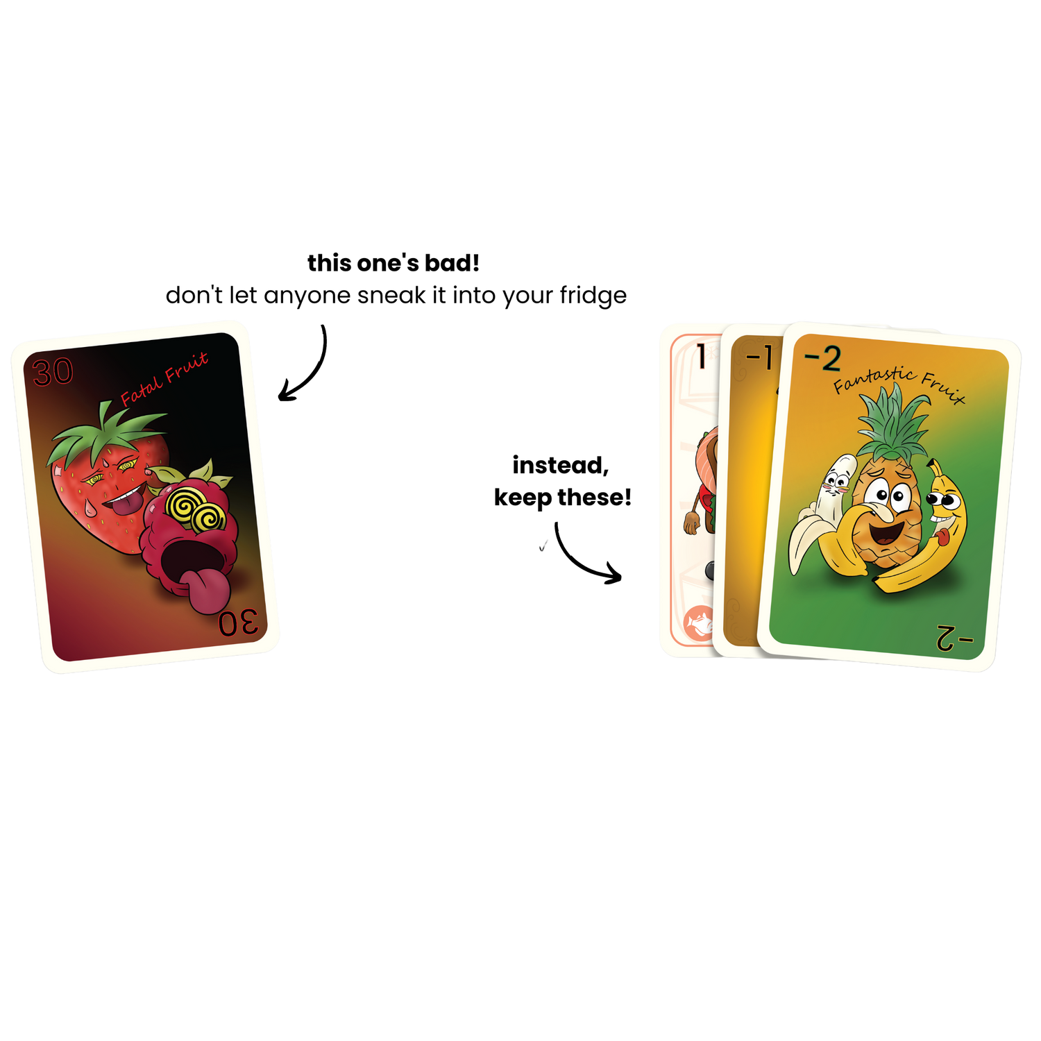 Alle koelkastkaarten hebben een nummer, variërend van -2 tot 30. Verzamel de laagste nummers om te winnen! Pas op voor het fatale fruit...